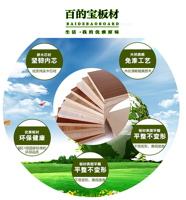 其次,百的寶免漆板的裝飾膜具有一定的防潮、防霉、耐磨、耐洗等實用功能,與傳統的木材相比,性價比更高。