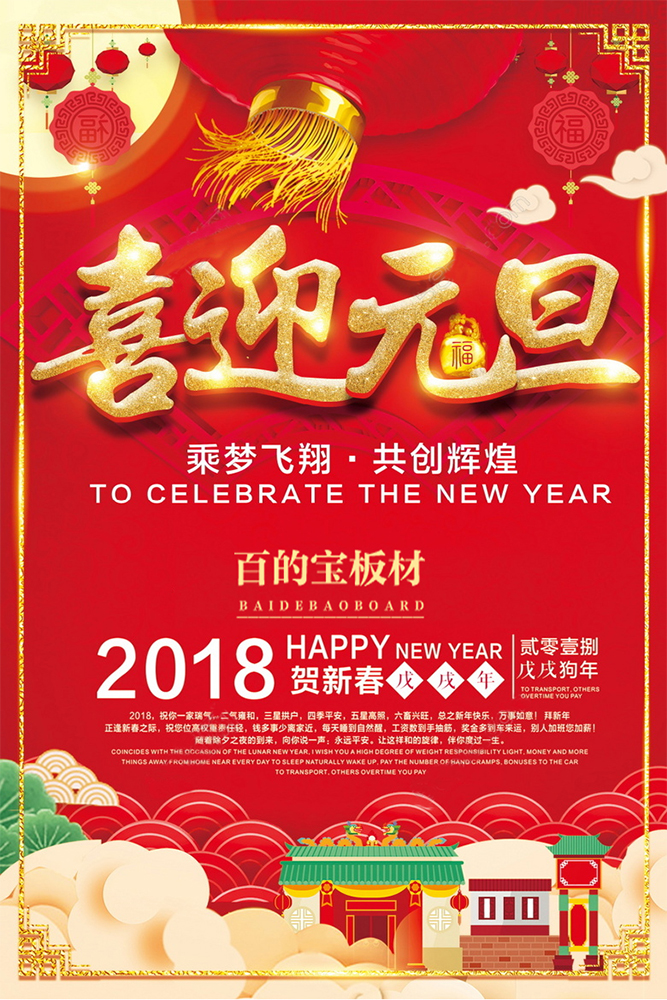 中國板材品牌百的寶喜迎元旦:2018乘夢飛翔,共創(chuàng)輝煌!