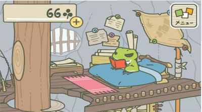 游戲中的這只蛙看書能看一整天、伏案寫日記也常常是一整天不吃不喝、削木塊似乎永遠不會累,這是一只專注又努力的青蛙。