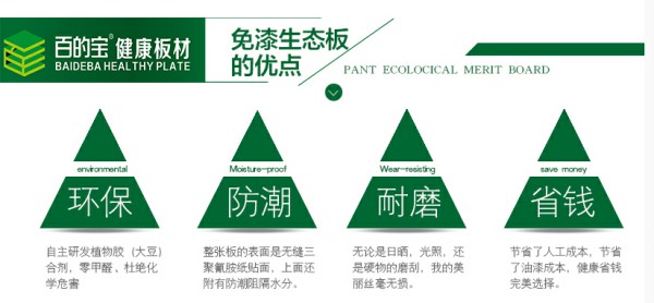 刨花板材一度也是行業的大勢,但因其在使用中很容易受潮,無法長期使用,時間久了就會出現各種問題,所以逐漸被杉木生態板替代了。百的寶健康板材品牌杉木生態板完全杜絕了這種現象,它是基于實木板結合到一起,而且沒有任何的化學物質,不會有甲醛等,使用起來放心,而且是防水,防腐,防蟲。這會讓消費者在使用中非常放心,也很安心,彌補了過去板材的空白。