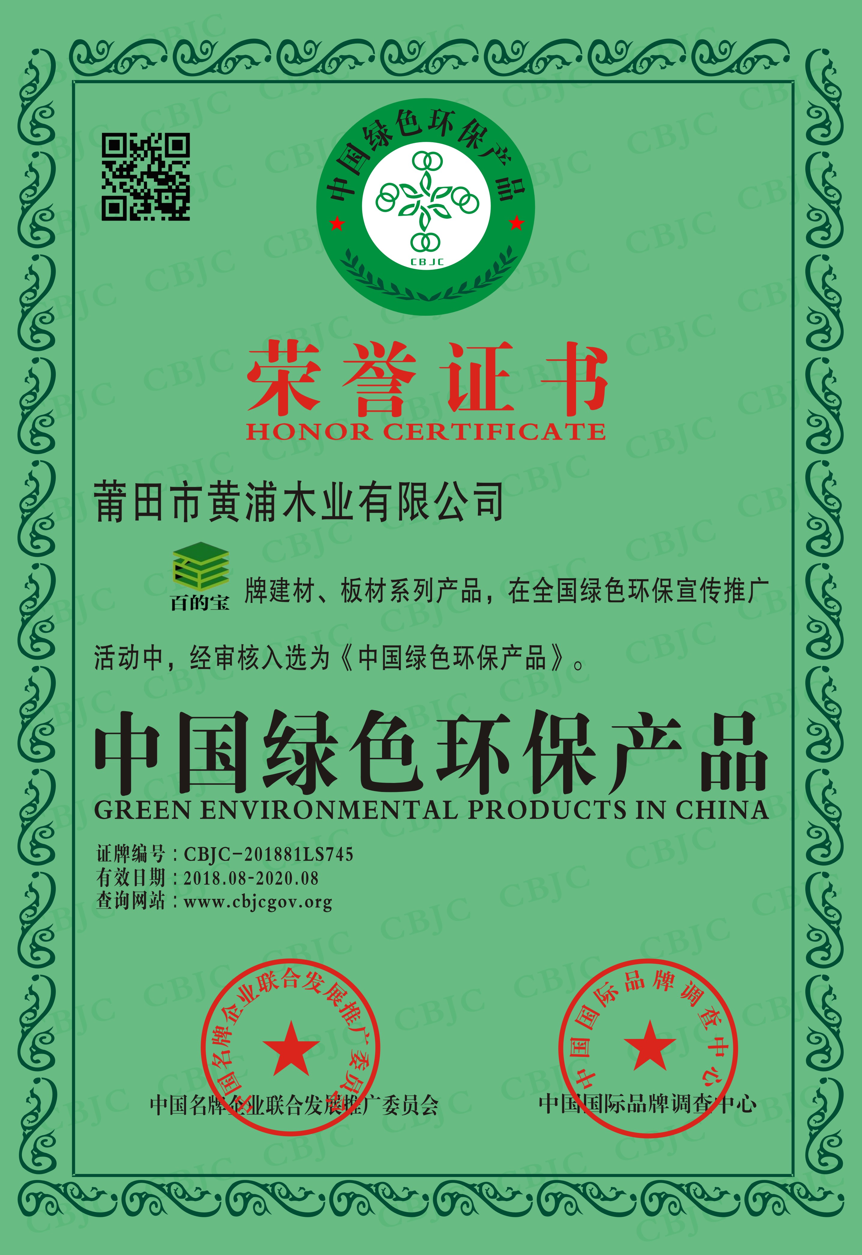 2018年8月“百的寶”牌板材系列產(chǎn)品在全國綠色環(huán)保宣傳推廣活動中,被中國名牌企業(yè)聯(lián)合發(fā)展推廣委員會、中國國際品牌調(diào)查中心選為 “中國綠色環(huán)保產(chǎn)品”!