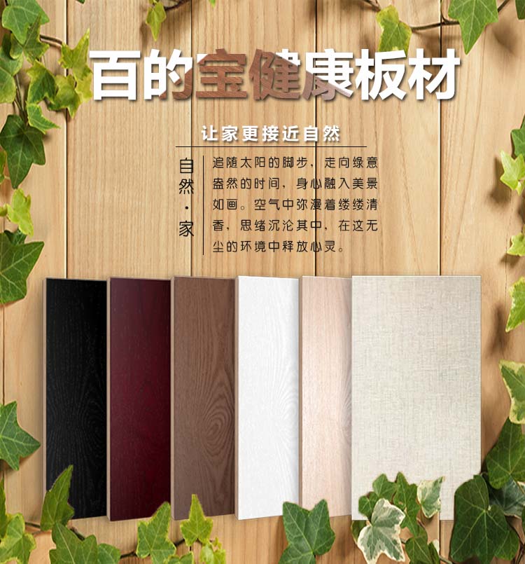 百的寶板材品牌作為中國中高端板材服務商,在板材的創新研發、工藝提升及營銷服務等方面已經擁有多年的經驗積淀。創建了一系列不同定位的產品。產品類別涉及板材系列、地板系列、木門系列、櫥衣柜及家居飾品系列等領域,定位于不同細分市場的產品,造就了百的寶板材獨特而完整的品牌定位。