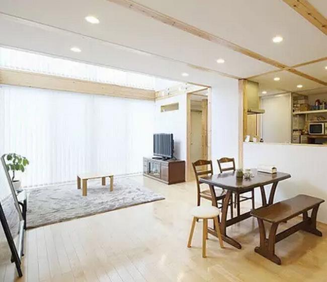 2、 百搭木地板戶型小——采光要好,搭配光面淡黃木地板,散射更顯空間大。