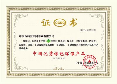 百的寶板材于2012年11月9日榮獲“中國優秀綠色環保產品”。(圖)