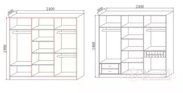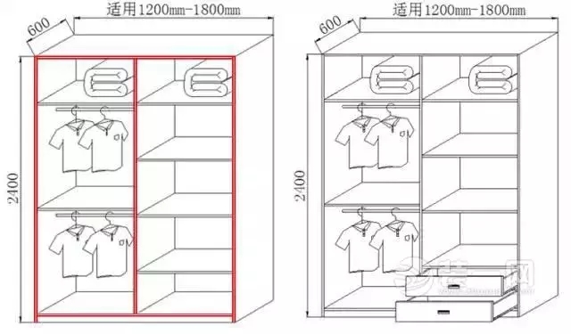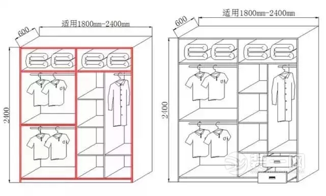 一般需要將衣柜左右兩邊分別設(shè)置成男女方各自的儲(chǔ)衣空間。