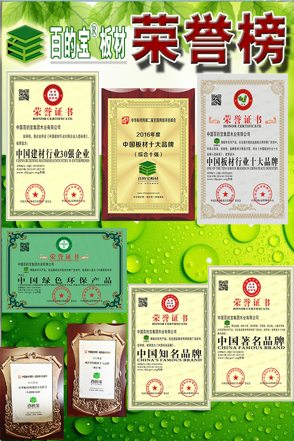 板材品牌百的寶榮獲權(quán)威機(jī)構(gòu)多項(xiàng)榮譽(yù)稱謂!
